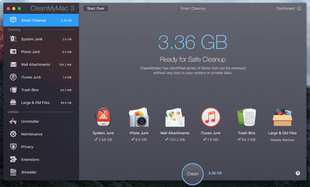 The core purpose of CleanMyMac is cleaning junk files from your Mac. This cleaning is done using either Smart Cleanup and Deep Cleanup. Smart cleanup involves fast scanning of your Mac to identify files that safe to remove. Deep cleaning allows scanning of six different sub-parts namely: System junk, photo junk, email attachments, iTunes Junk, large files and trash bins. The CleanMyMac cleaning feature allows detection and safe removal of all junk files on your Mac, and if done well, it is possible to free up several gigabytes of storage data.