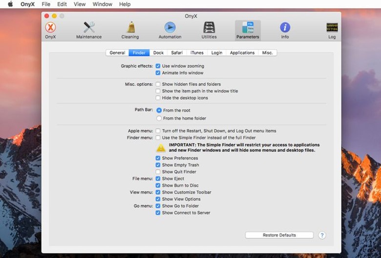Onyx for Mac, sold by Titanium Software is a free system maintenance program, which provides an automated method of running maintenance scripts, and accessing hidden files; thus, ensuring your Mac runs at top performance. Despite Mac OS being a stable operating system, it is important to run several maintenance processes. Onyx is a perfect third-party software for performing maintenance services for your Mac.